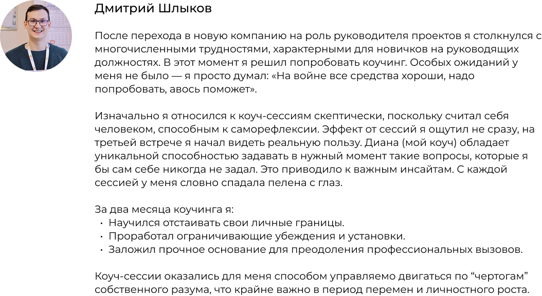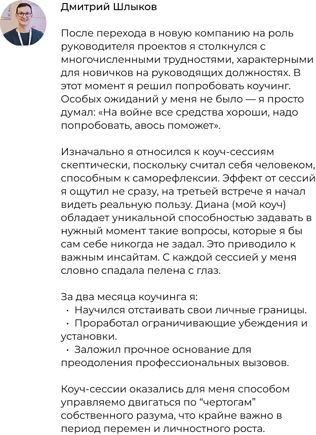 Коучинг - это всегда взгляд в настоящее и будущее,